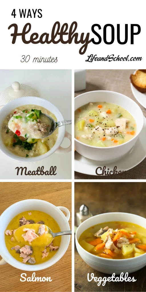 Luckily for you, I’m offering some suggestions for ingredients that go perfectly together in my recipes for soup. You’ve got chicken soup, salmon soup, and meatball soup. Plant-based eaters, worry not, I didn’t forget you – there’s a variation for you as well. The best part is, they all use the same base. Once you master how to prepare it, you can switch between the variations I’m about to offer you and enjoy all the possibilities.
